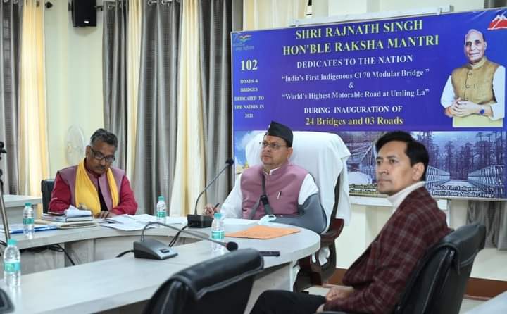 केंद्रीय रक्षा मंत्री राजनाथ सिंह ने उत्तराखण्ड के 3 पुलों का वर्चुअल लोकार्पण किया। कार्यक्रम में मुख्यमंत्री पुष्कर सिंह धामी ने भी वर्चुअल माध्यम से प्रतिभाग किया। कार्यक्रम में रक्षा मंत्री राजनाथ सिंह द्वारा कुल 24 पुल और 3 सड़कों का लोकार्पण किया गया।