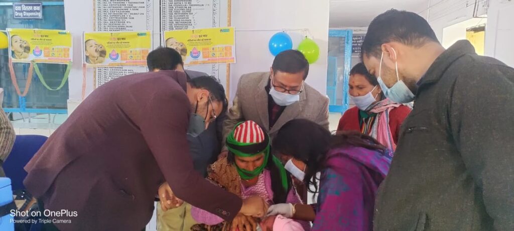 मुख्य विकास अधिकारी गौरव कुमार ने रविवार को जिला चिकित्सालय उत्तरकाशी में नवजात शिशुओं को पोलियो की खुराक पिलाकर पल्स पोलियो अभियान का शुभारंभ किया