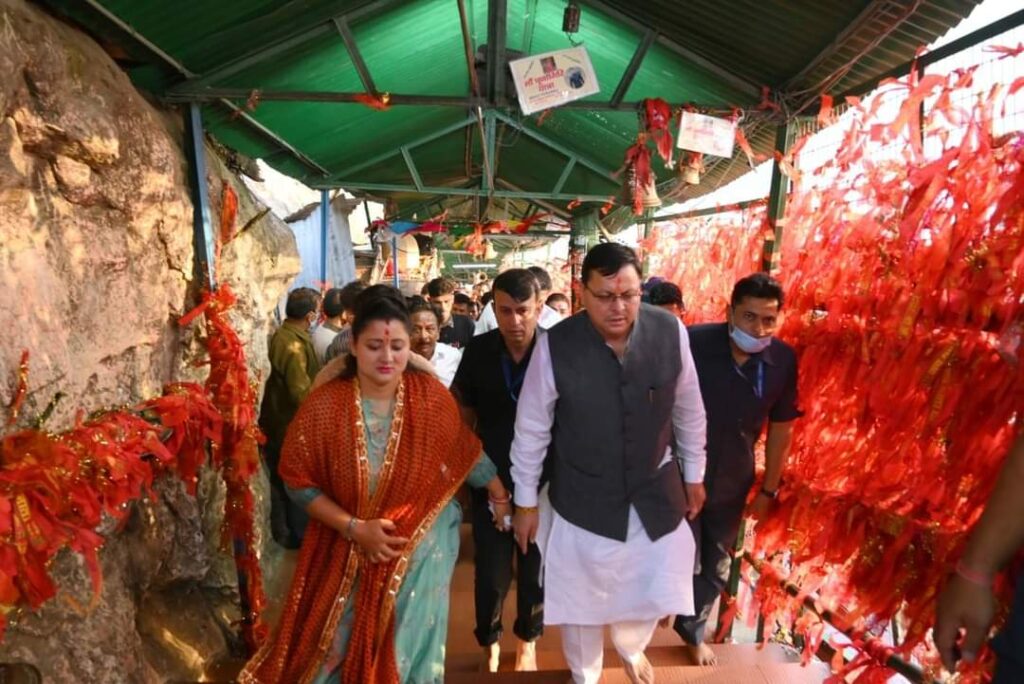 मुख्यमंत्री पुष्कर सिंह धामी ने आज चैत्र नवरात्रि के अवसर पर चंपावत जिले के टनकपुर स्थित माँ पूर्णागिरी मंदिर में दर्शन कर पूजा पाठ की और प्रदेश वासियों की सुख-शांति एवं समृद्धि की कामना की है।