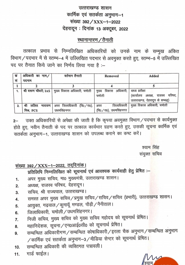 Breaking Dehradun UK-7 header HEADLINES Latest news Uttarakhand उत्तराखंड शासन ने किए दो बड़े अधिकारियों के तबादले। Uttrkhand24×7livenews admin October 13, 2022 0 उत्तराखंड शासन ने किए दो बड़े अधिकारियों के तबादले आईएएस वरुण चौधरी को मुख्य विकास अधिकारी चमोली पद से हटाया गया वरुण चौधरी को बाध्य प्रतीक्षा में रक्खा गया Pcs ललित नारायण मिश्र को बनाया गया मुख्य विकास अधिकारी चमोली Post navigation Previous: तपोवन के पास देर रात्रि को कार दुर्घटनाग्रस्त, SDRF ने किया सफल रेस्क्यू। Uttrkhand24×7livenewsNext: मुख्यमंत्री पुष्कर सिंह धामी ने किया आईएसबीटी का औचक निरीक्षण। Uttrkhand24×7livenews More Stories Breaking Dehradun UK-7 Haridwar UK-08 header HEADLINES Latest news Political Trending Uttarakhand सीएम धामी ने बैरागी कैंप में कार्यक्रम तैयारियों का किया निरीक्षण। Uttarakhand 24×7 Live news admin March 3, 2026 0 Breaking Dehradun UK-7 header HEADLINES Latest news Trending Uttarakhand देहरादून में डीएम सविन बंसल की जनसुनवाई, 92 शिकायतों पर समयबद्ध निस्तारण के निर्देश। Uttarakhand 24×7 Live news admin March 2, 2026 0 Breaking Culture Dehradun UK-7 header HEADLINES Latest news Political Trending Uttarakhand भाजपा प्रदेश कार्यालय में मुख्यमंत्री और वरिष्ठ नेताओं ने खेली होली। Uttarakhand 24×7 Live news admin March 2, 2026 0 Leave a Reply Cancel replyYour email address will not be published. Required fields are marked *Comment * Name * Email * Website Save my name, email, and website in this browser for the next time I comment.